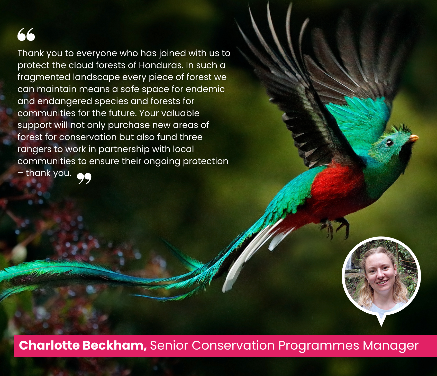 We are extremely appreciative of every donation you have made to our Save the Cloud Forests of Honduras appeal, and we can’t wait to share future updates as the project progresses.